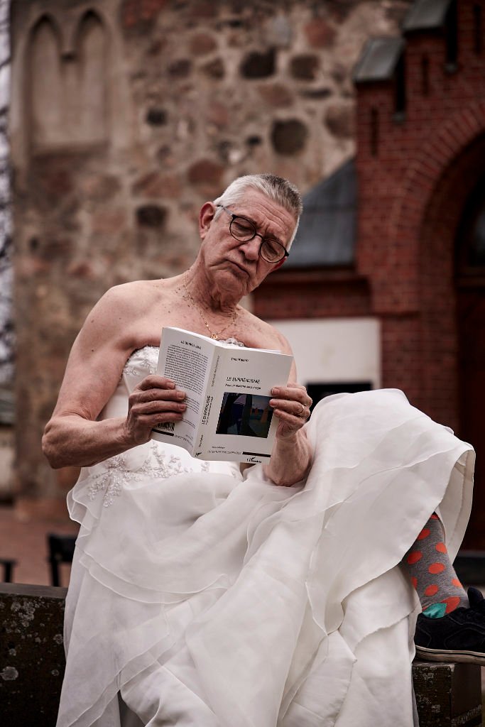 I have several bride dresses of different size, and shape, you may even have one yourself that you are willing to play with. The idea is to get into surrealist situations, We can stay indoors or spend time outside, be it sunny or rainy, be it in the city, a shopping centre, in an apartment, in the museum, a forrest, the beach, in the water in a lake. our imagination is the limit and we just need to be aware of some basic safety rule. Among other things, wedding dresses can get really heavy when they get wet. We need to meet first to choose which dress will fit for the shooting, this can of course be done the same day. and then we spend up to 3hours (everybody will be tired by that time) goofing around the selected location.