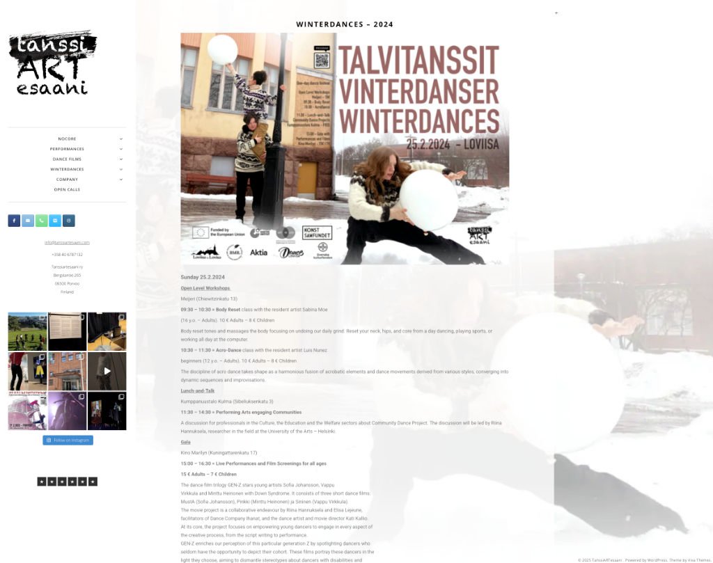 Since then I have been doing a couple of broadcasts for TanssiARTesaani : NoCore Rosebud and a few seminar courses with the association GAP. The set up is two cameras and a computer plus the broadcaster. It is really good to have at least another person as a camera operator or on-the-flight editor.